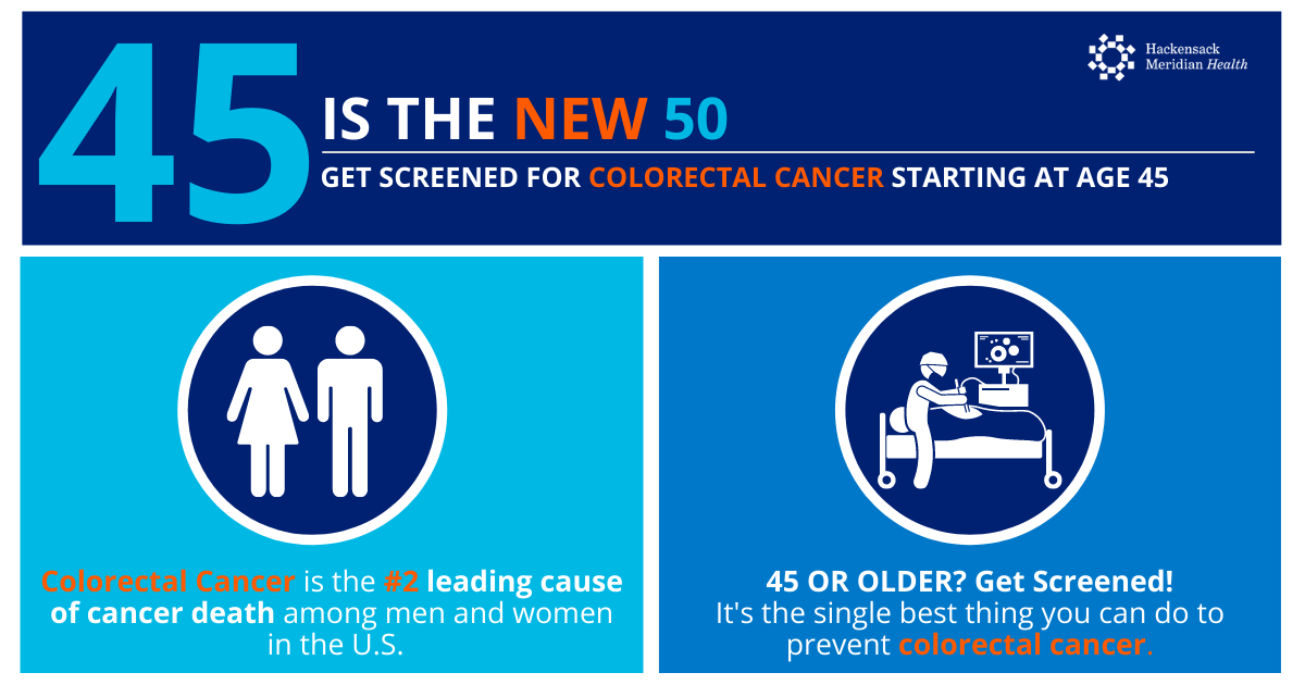 Colorectal Cancer is the second leading cancer killer in the United States. Early stages of colorectal cancer may not have any signs or symptoms. Colorectal cancer screenings help prevent this disease and saves lives through early detection and treatment. It is recommended by the Centers for Disease Control that all people over 45 get screened for colon cancer. This is because 90% of colorectal cancer is found in people over 50.