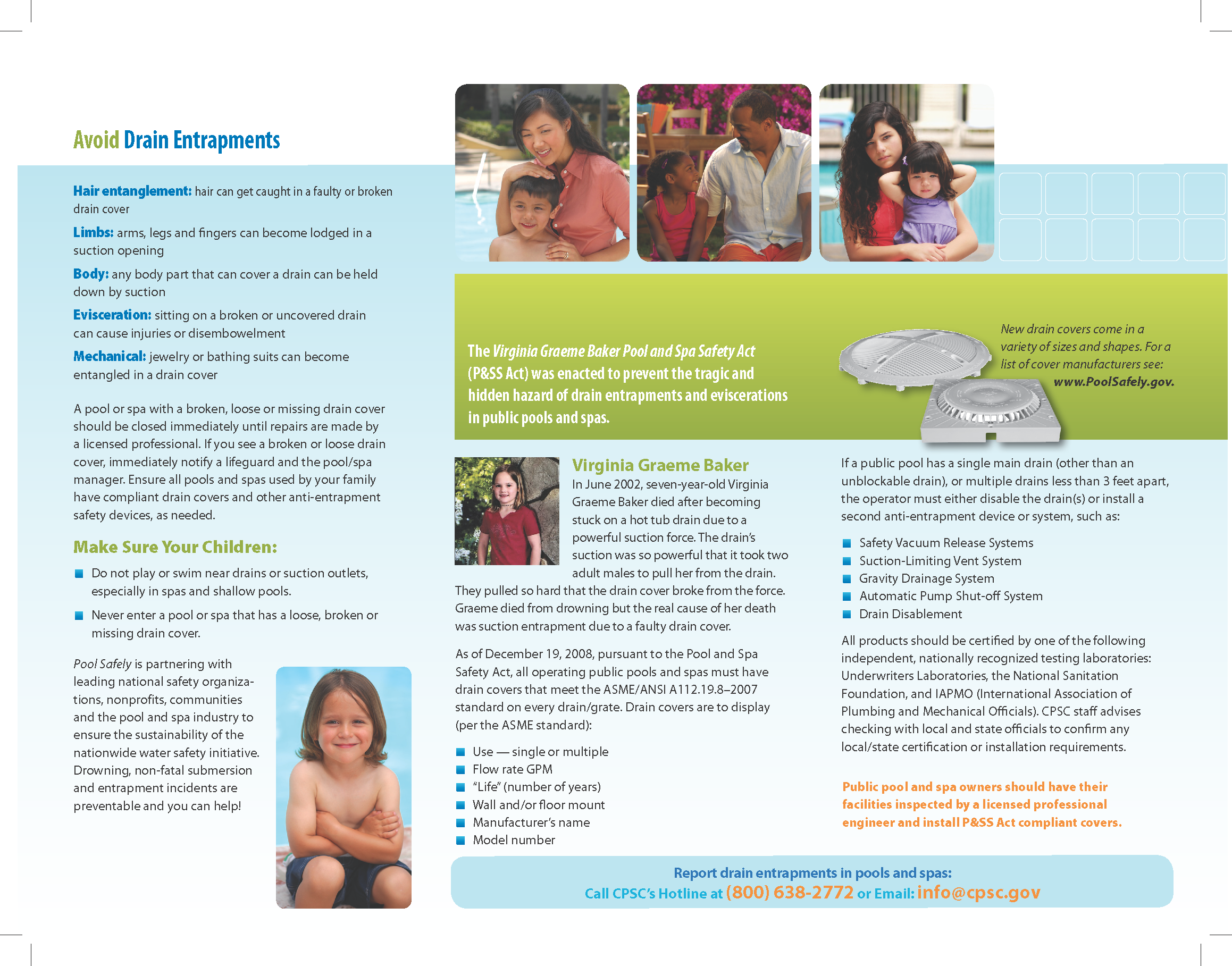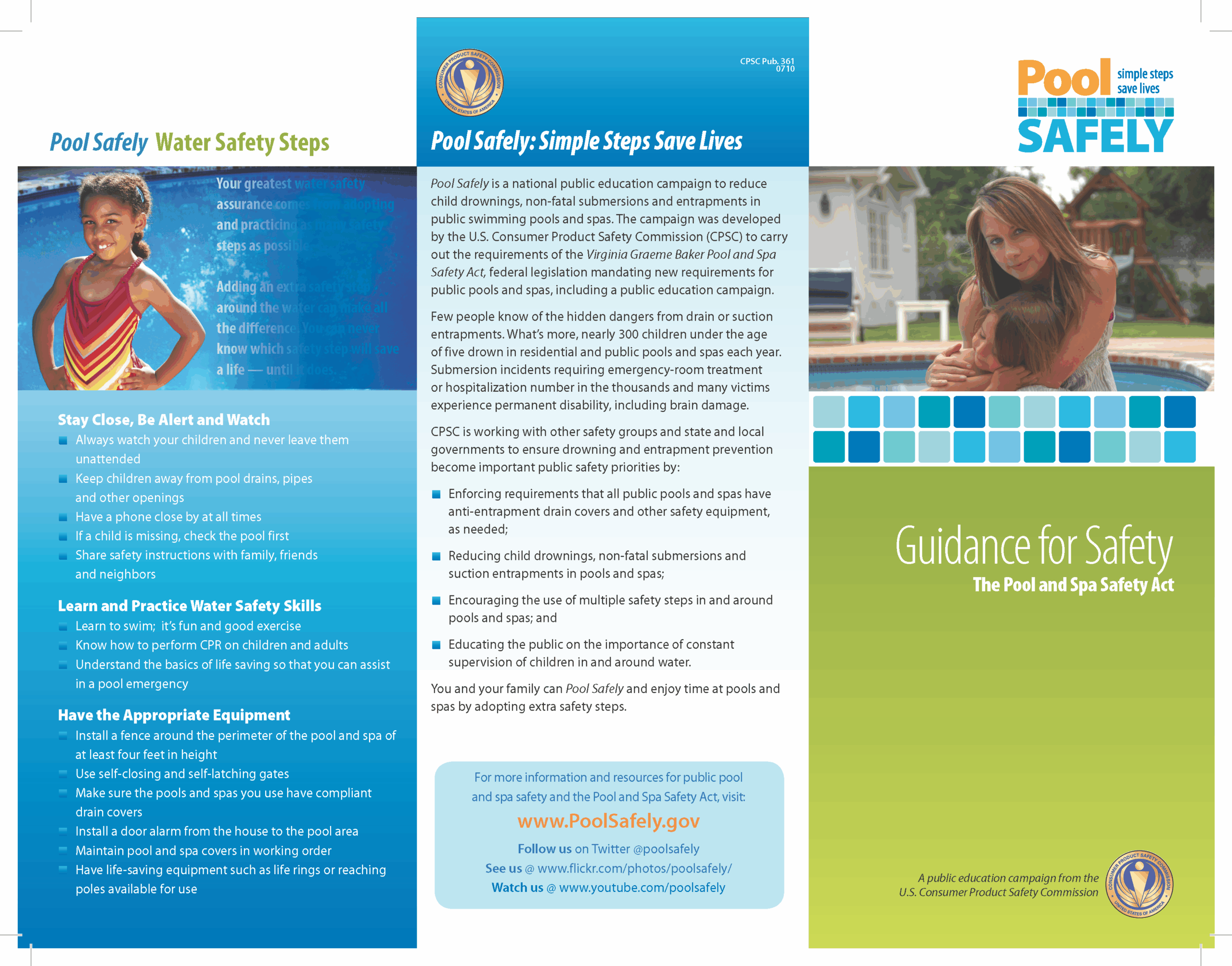 Are you cooling off in the pool this summer? Follow these tips to keep your friends and family safe! Water Safety Pool Safety/Drain Safety Visit Guidelines for Keeping Your Pool Safe and Healthy for more pool safety information!