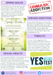 Please enjoy our April issue of “Healthy Happenings”, highlighting our programs going on at the health department. For more information on all of our programs, call 443-523-1700! Please Click Here for the PDF Version.