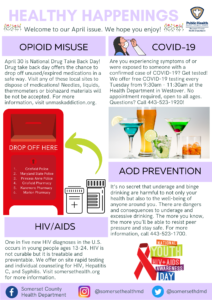 Please enjoy our April issue of “Healthy Happenings”, highlighting our programs going on at the health department. For more information on all of our programs, call 443-523-1700! Please Click Here for the PDF Version.