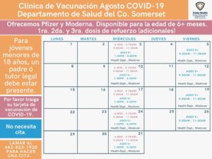 SOMERSET COUNTY HEALTH DEPARTMENT ANNOUNCES AUGUST COVID-19 VACCINATION SCHEDULE