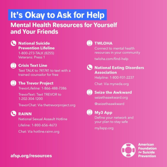 9-8-8 Suicide & Crisis Lifeline: Offers 24/7 call, text and chat access to trained crisis counselors who can help people experiencing suicidal thoughts, substance use, and/or mental health crisis, or any other kind of emotional distress. People can also dial 988 if they are worried about a loved one who may need crisis support.